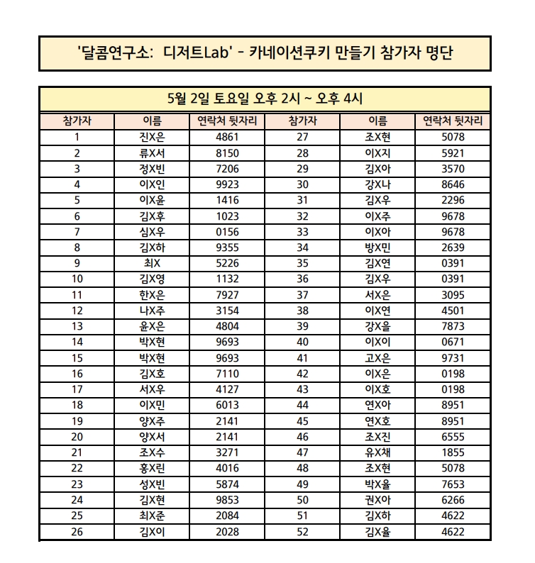 '달콤연구소: 디저트 Lab' - 카네이션쿠키 만들기 참가자 안내 드립니다!프로그램 일시를 꼭 확인하여 주시기 바랍니다!