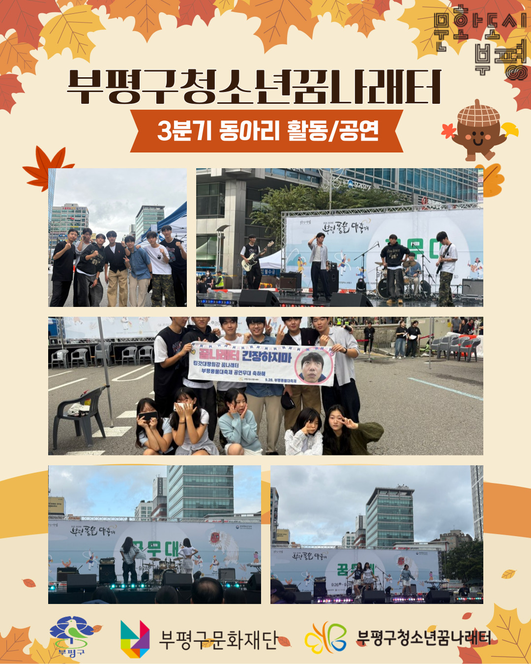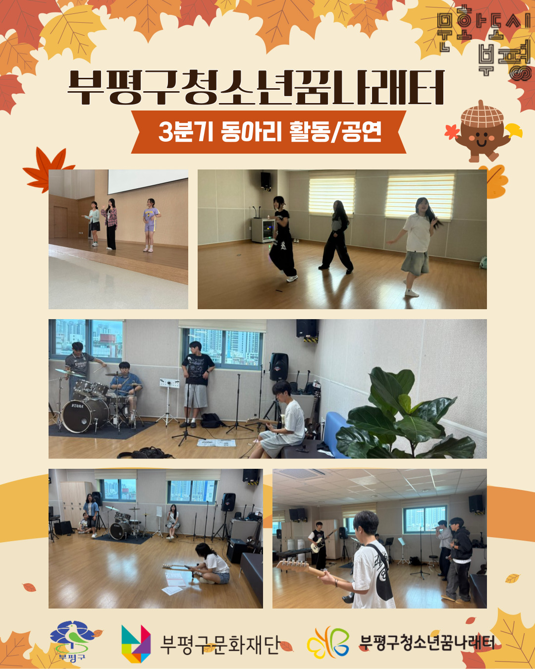 부평구청소년꿈나래터의 3분기 동아리활동을 소개합니다. 3분기에도 많은 동아리들이 함께 열정적으로 참여해주었습니다.
