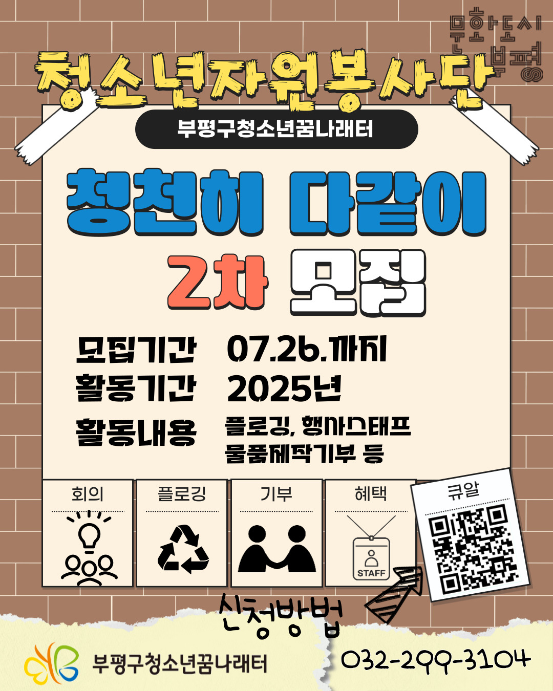 다양한 방법으로 봉사활동을 하며 지역사회를 더욱 빛나게 만드는 청천히 다같이를 모집합니다.