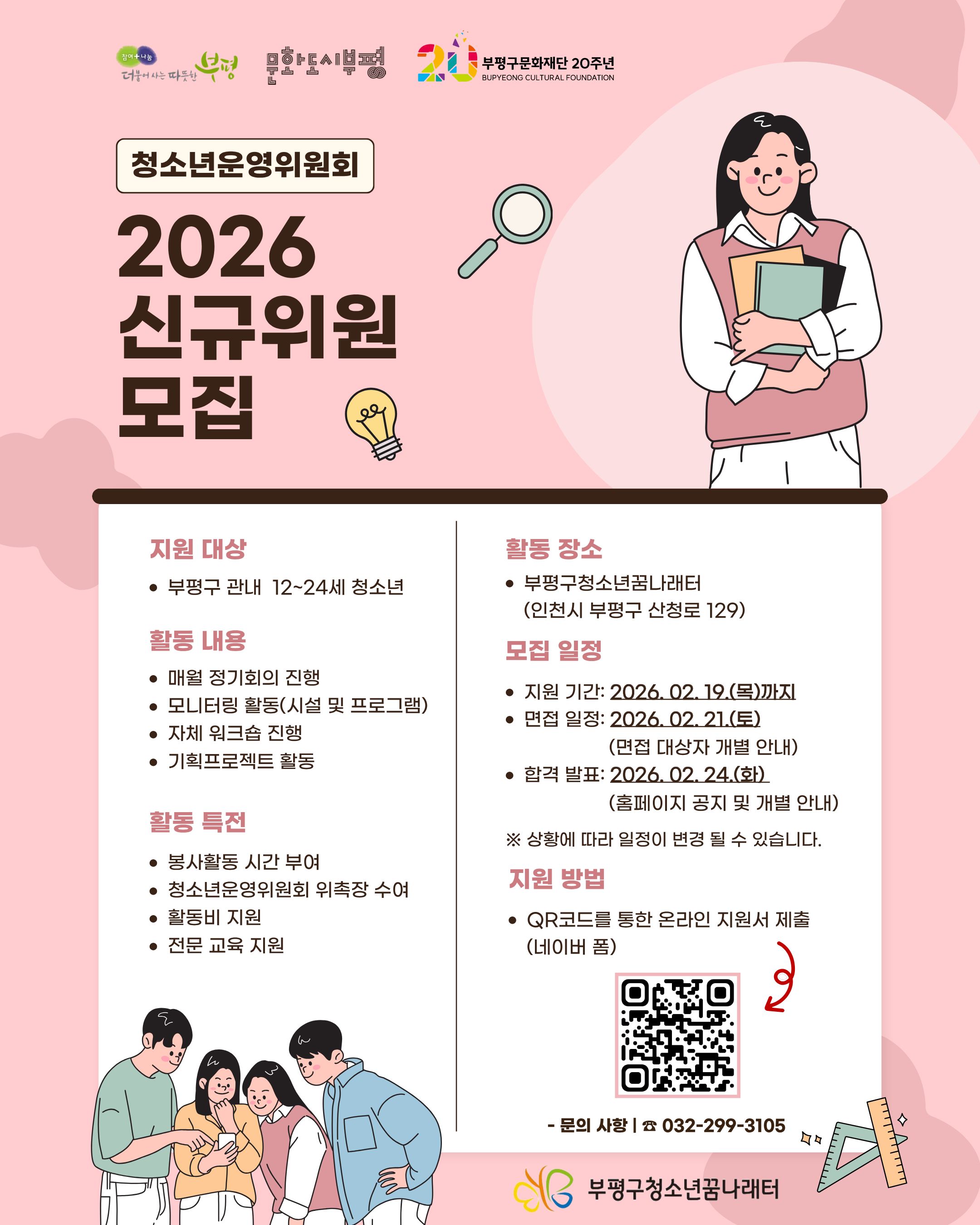 [모집] 2026 부평구청소년꿈나래터 청소년운영위원회 신규 위원 모집