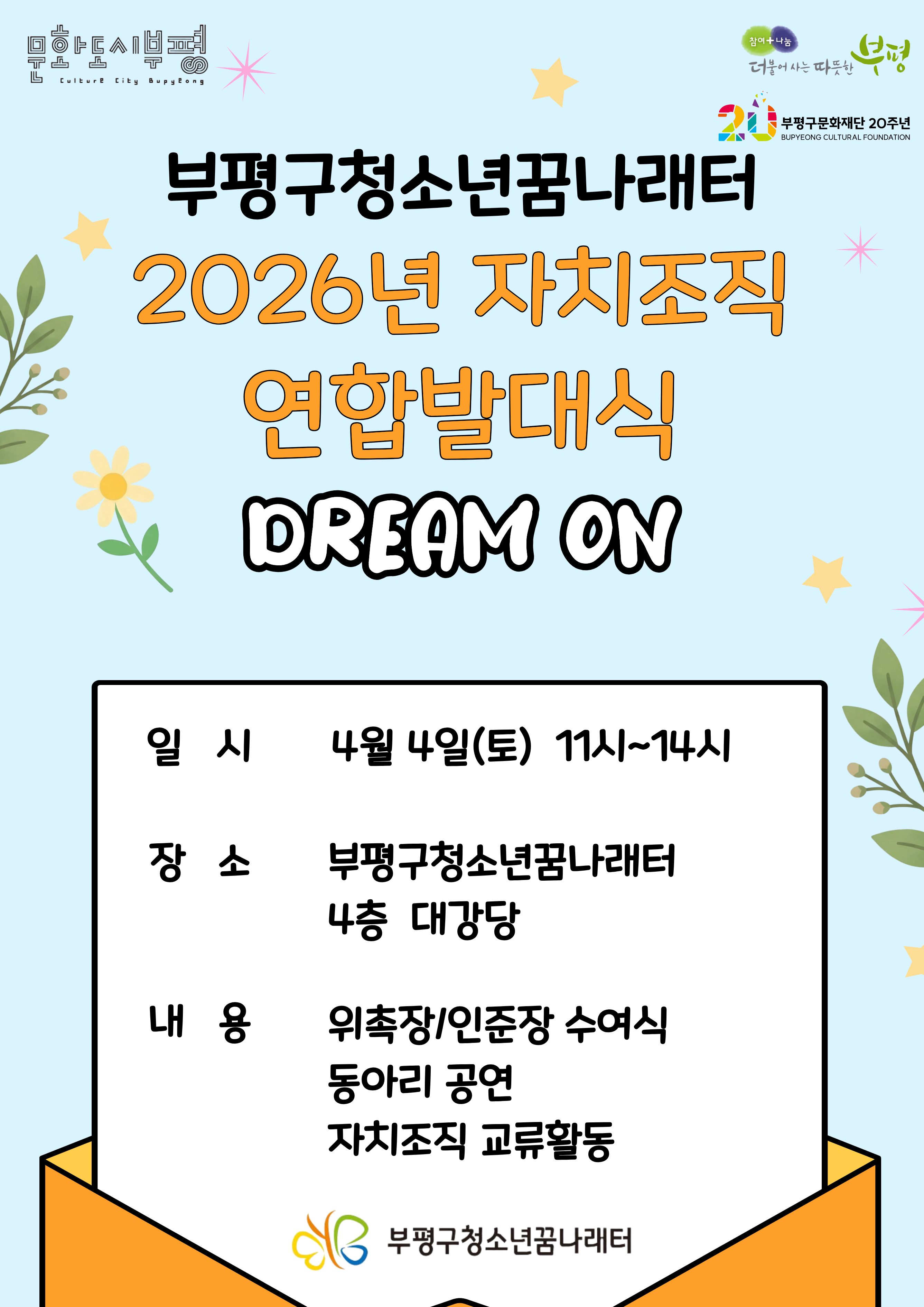 2026년 부평구청소년꿈나래터 자치조직 연합 발대식 'DREAM ON'